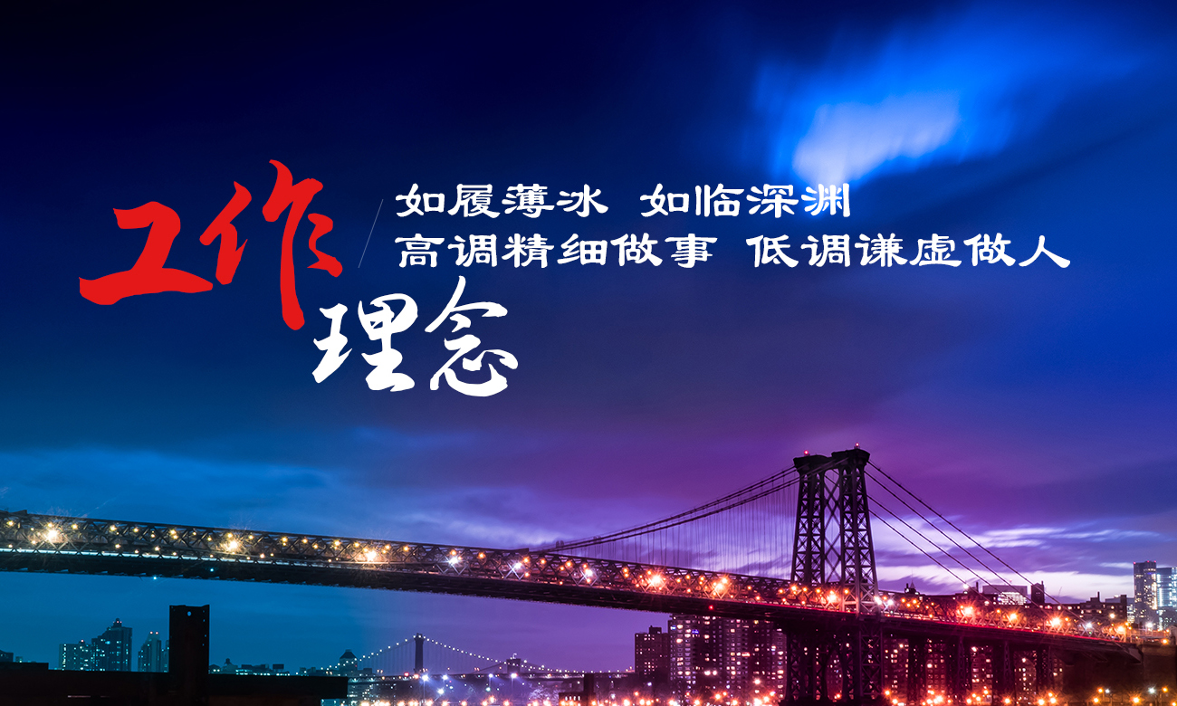 公司以建造合格建筑產(chǎn)品、助力國家建設為使命,以構(gòu)建幸福企業(yè)為愿景。公司深知助力國家建設為使命所擔負的責任,故以“如履薄冰、如臨深淵、高調(diào)精細做事、低調(diào)謙虛做人”為工作理念,建立了完善的管理制度和質(zhì)量保障體系,以人為本,構(gòu)建和諧環(huán)境。公司牢固樹立安全意識、文明意識、質(zhì)量意識、環(huán)境意識和精品意識。在公司質(zhì)量管理過程中貫徹“雙百”方針:即工程合格率100%,客戶滿意率100%。以“建設一項工程,樹好一個形象,多出一份誠信,廣交一方朋友”為公司經(jīng)營理念。